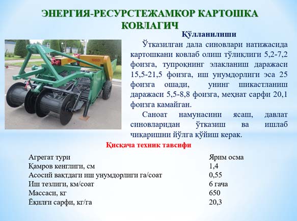 Energiya-resurs tejamkor kartoshka kovlagich